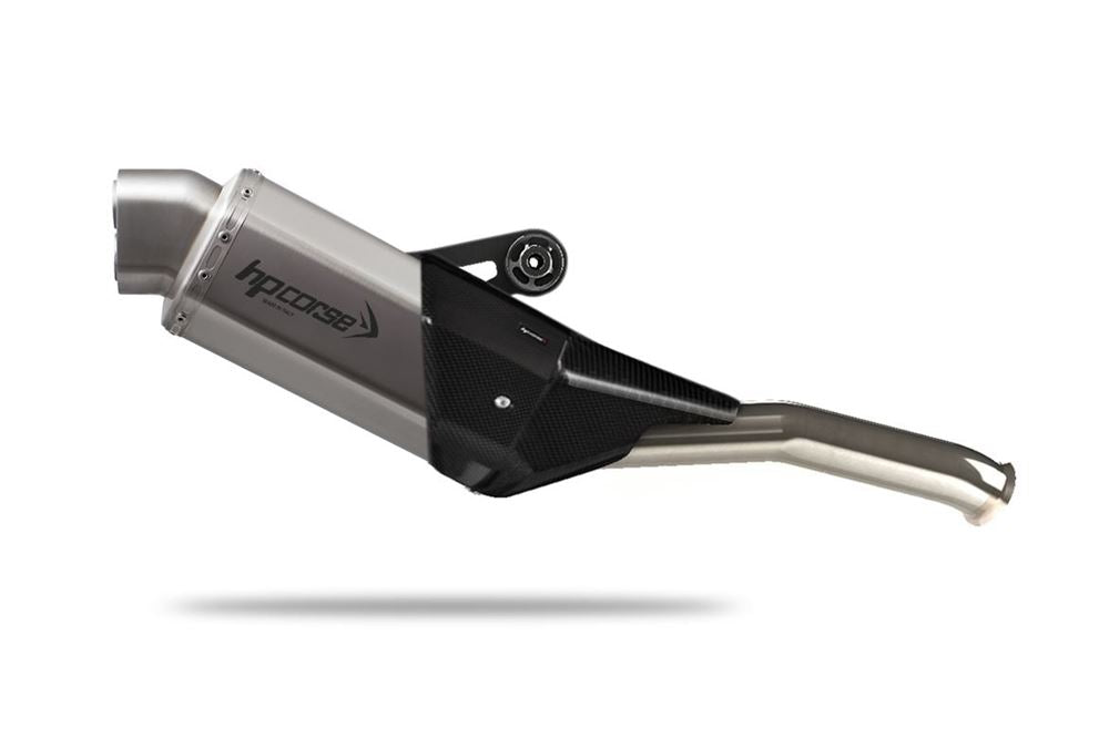 Purity of design, 4-TRACK R is dedicated to the Maxi Enduro, the Sport Touring / Adventure and Crossover of last generation, the new 4-TRACK R loves the thrill of the great spaces and the roads that go beyond the horizon. Designed in the R & D Center of Bologna, the new HP CORSE creature is born strong, able to withstand the most demanding situations and to the many km ridden to accompany motorcyclists through the roads and paths, mountain steps, deserts all over the world. Tested for more than a year on the test bench and on the most demanding routes, the new HP CORSE exhaust assures reliability and improved performance than all the original mufflers that replaces in particular at low and midrange regimens. HP Corse 4-TRACK R is light, it has an octagonal shape, it has a hydroformed spout and a silencer body with a laser logo. Available in three different materials: Titanium, Satin Steel, and Ceramic Black Stainless.