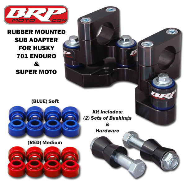 The BRP rubber-mounted SUB "Scotts Under Bar" adapter uses (8) polyurethane bushings to isolate vibration and reduce rider fatigue by softening the harshness of hitting square edge rocks and obstacles. Now available with two different durometer bushings to fine tune the amount of vibration dampening.