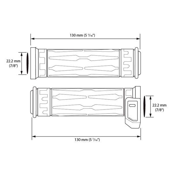 Finished are the days of searching around for a dial or button to turn on heated grips. Power on and adjust the temperature of the Apollo heated grips with our innovative thumb switch design. Made of high quality soft to the touch rubber, these grips will give you the ability to ride for longer periods of time while staying warm and comfortable.