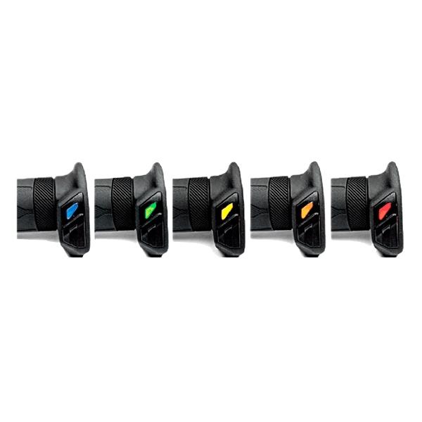 • 5 color LED Indicators for the rider to quickly know in which heat level the grips are set.