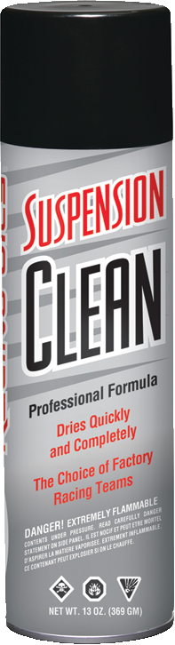 Professional strength cleaner specifically designed to clean suspension internally and externally. Unique and proprietary formulation combines industrial strength cleaners with a powerful spray to ensure maximum cleanliness while leaving a dry and residue free surface. Suspension Clean is strong enough to eliminate tough-to-clean grime and debris, but safe enough for incidental contact with Nitrile (buna-n), Viton and most seal materials.
