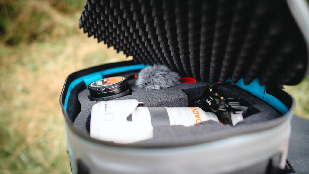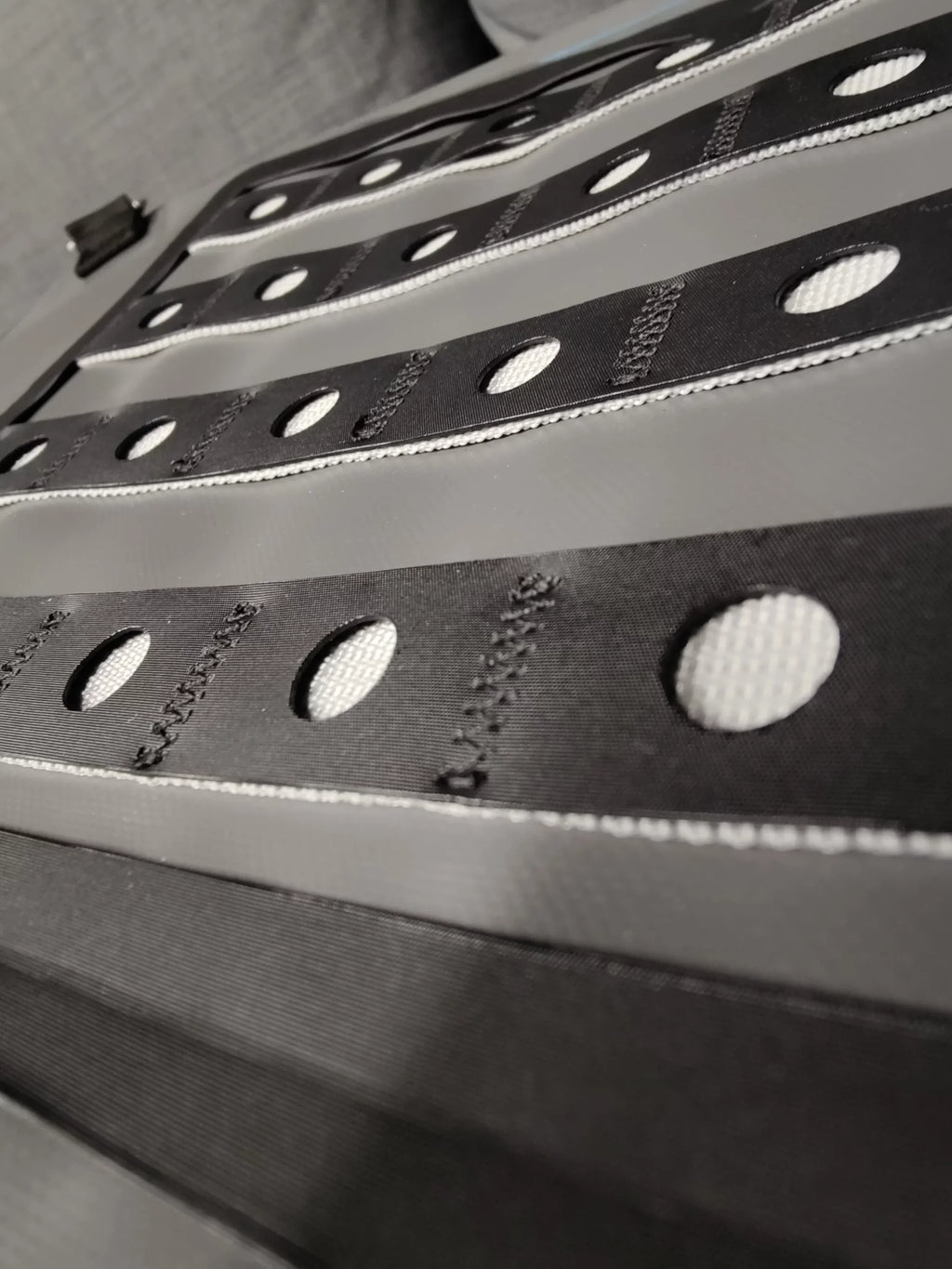 For the photo freaks or those with other types of breakables there is a foam insert available separately which is exactly the size of the bag and to be customized via removable cubes to perfectly fit cameras, objectives and drones. This insert is 100% made in Germany from a company who specializes in anti vibration foams for all kind of uses, so you can ride with your mind at ease. The insert consists of 4 layers, 2 customizable raster foam panels, a bottom foam panel and a dimpled foam lid.