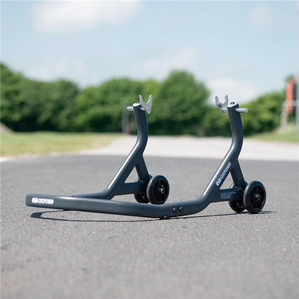 The durable steel construction of this rear paddock stand, heavy duty fasteners and oversized base with large wheels for increased stability combine to make a dream piece of workshop equipment.