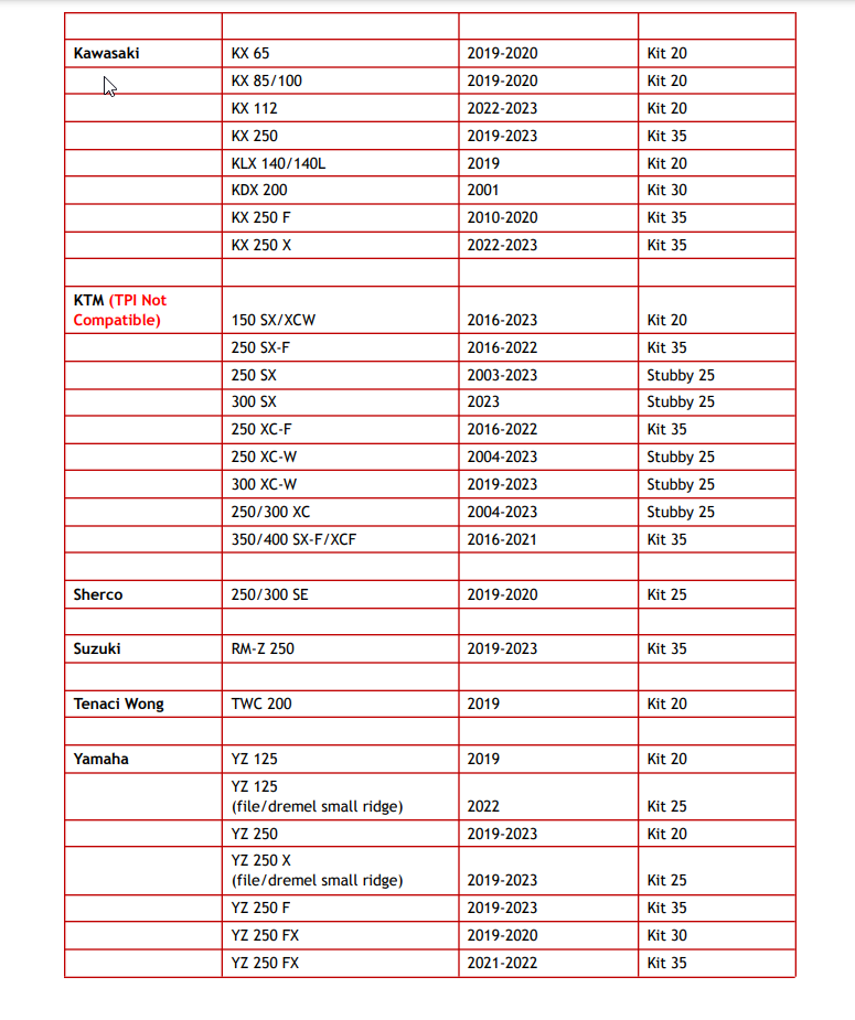 • Fits Honda, Kawasaki, Husky, GasGas, BETA, KTM, Suzuki, Yamaha, Tenaci Wong, Sherco & More