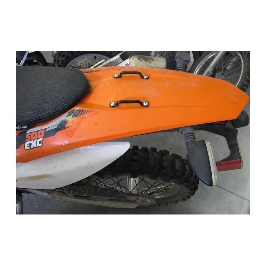 The Footmans Loop Anchor Kit is especially handy for creating lash points to secure Giant Loop's MoJavi Saddlebag and Coyote Saddlebag to late model KTM EXCs, Husqvarna FEs and other dual sport and dirt bikes that use an under fender support that prevents the fender hooks on our Saddlebags from from getting a good purchase on the fender edge.